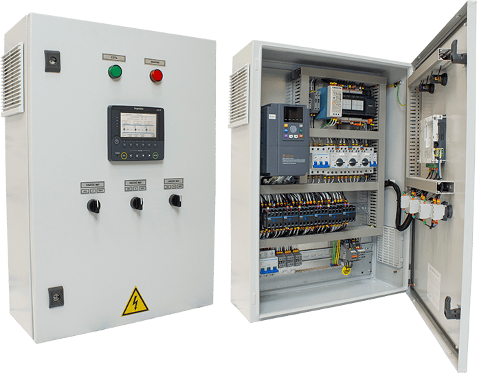 Мы предлагаем установку шкафов управления и автоматики, обеспечивающих дистанционный контроль техпроцессов, автоматическое управление оборудованием, его защиту и диагностику состояния, формирование отчетов и ведение истории.
